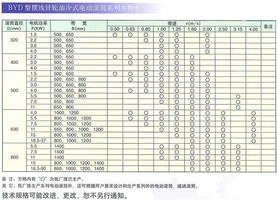 4、BYD型油冷式電動(dòng)滾筒的使用范圍和基本參數(shù)與JB4256(1.2.3)一86“YD油冷式電動(dòng)滾筒》一致。