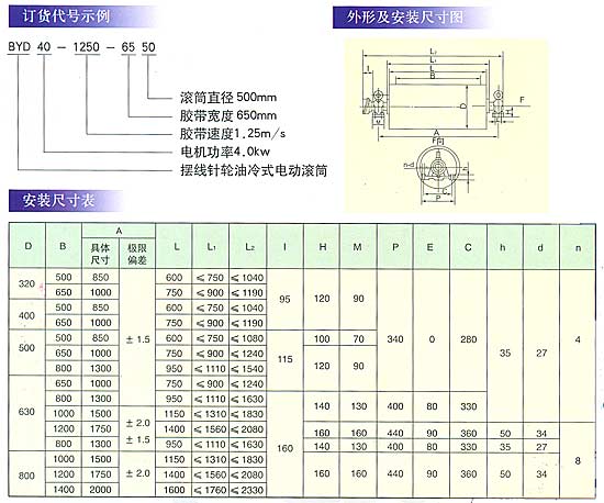 3、BYD型油冷式電動(dòng)滾筒選用于工作環(huán)境溫度一1 5℃~+40。c,海拔不超過1 DOO米。