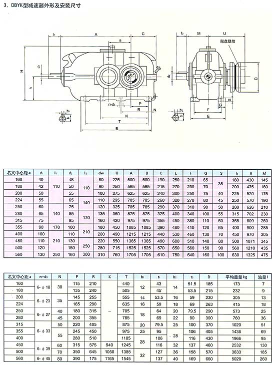 D一帶式輸送機(jī)類(lèi)組代號(hào),B一二級(jí)傳動(dòng),c一三級(jí)傳動(dòng),Y一硬齒面齒輪,z一中硬齒面齒輪,K一輸出軸為空心軸形式。